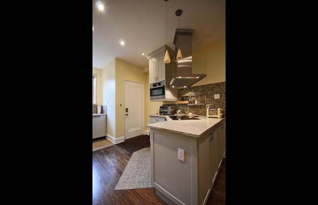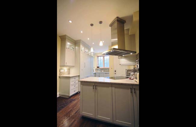 New walls, flooring, cabinetry, windows, appliances and storage solutions that blend beautifully into the rest of the remodeling theme, while bringing her up to date as a highly effective creative heart of this charming Old Ottawa home.