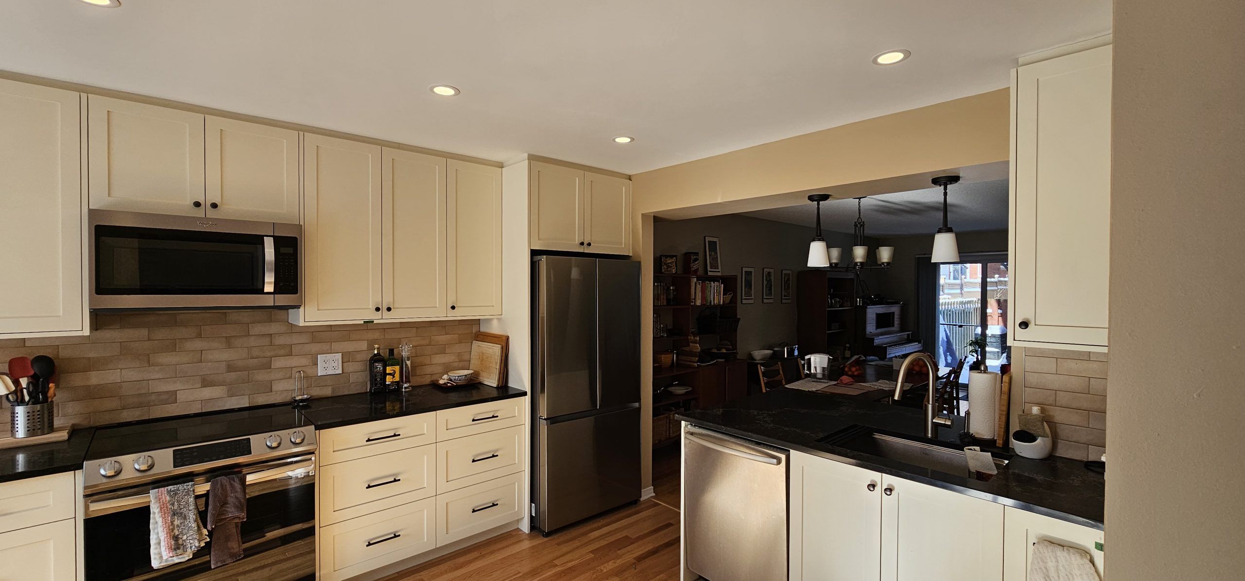 The result is a beautifully redesigned kitchen that not only looks stunning but also enhances the overall flow and functionality of the home. The seamless connection to the dining room creates an inviting space perfect for both everyday living and entertaining.